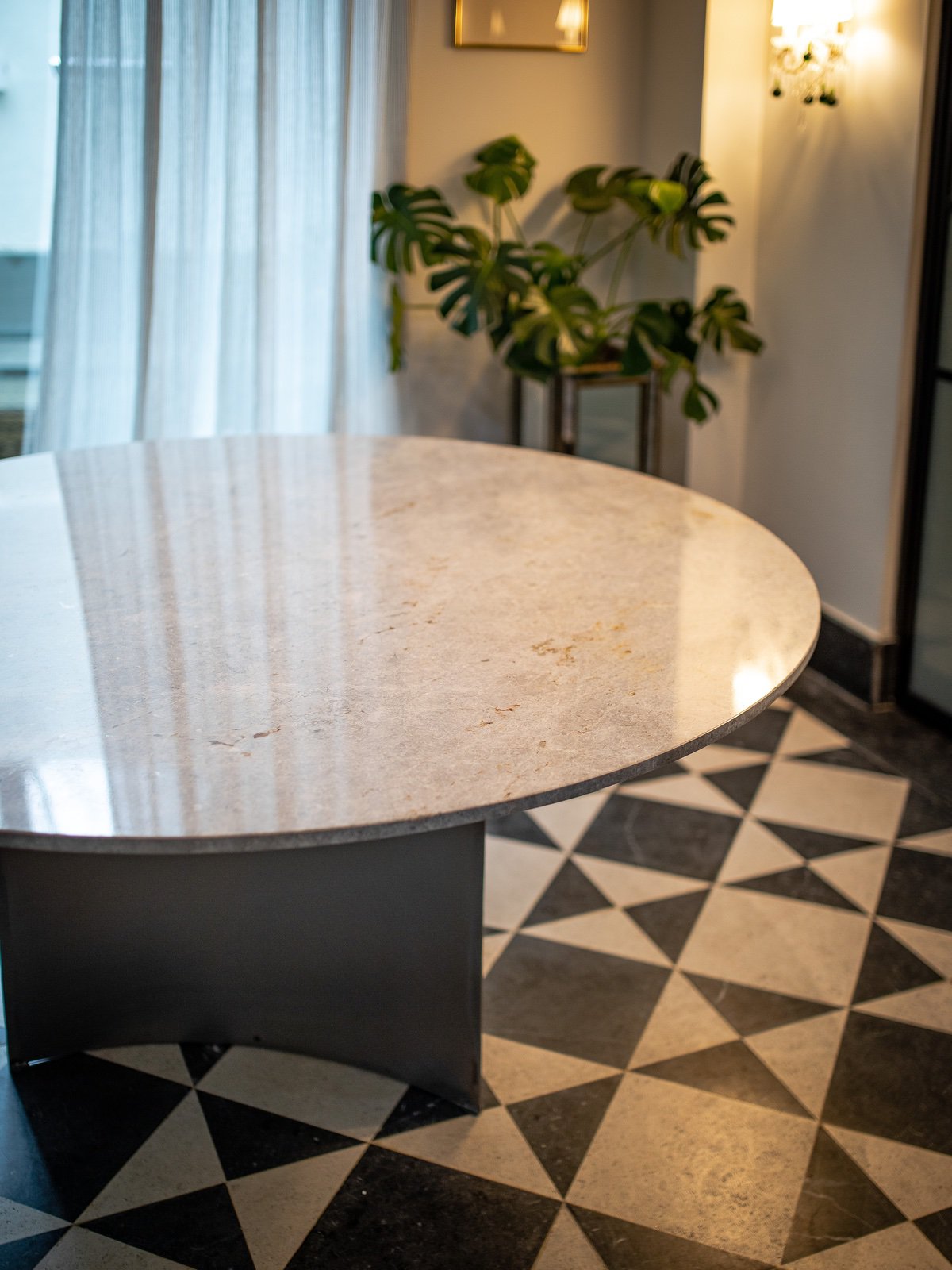 Burj rinde homenaje a la arquitectura de Dubái, donde las formas geométricas se mezclan con materiales nobles para crear una estética única. Creando una pieza poderosa y acogedora.
