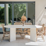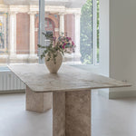 Mesas con tapa y base 100% de piedra natural.