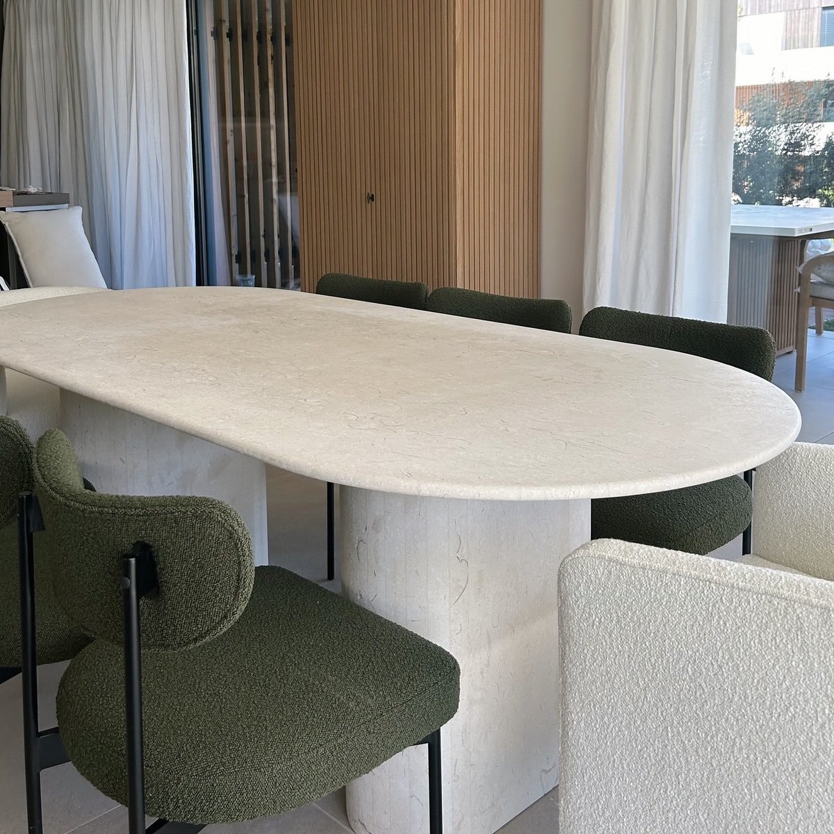 Mesas con tapa y base 100% de piedra natural.